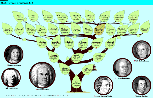 Onderstaand een stamboom van het Bachgeslacht vanaf Veit Bach(1550 -